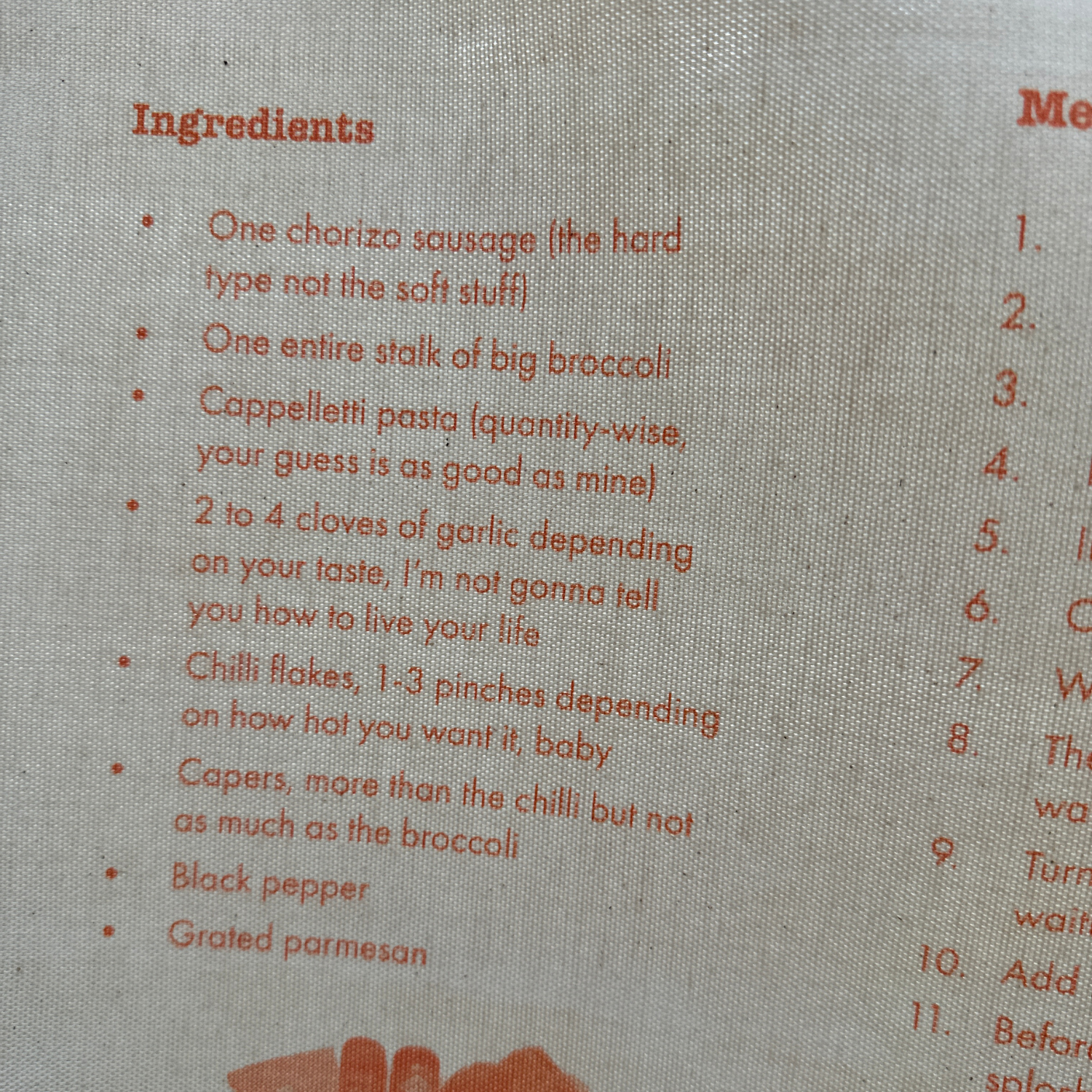 Chorizo Broccoli Pasta Tea Towel